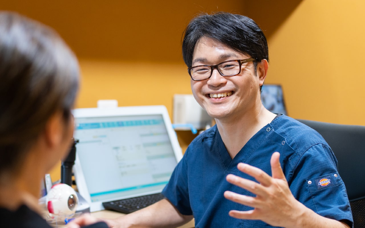症状や治療については、わかりやすく納得いただけるまでご説明いたしますので、気になることがあれば些細なことでもお気軽にご相談ください。皆さまの「かかりつけ医」として、目の健康をサポートいたします。