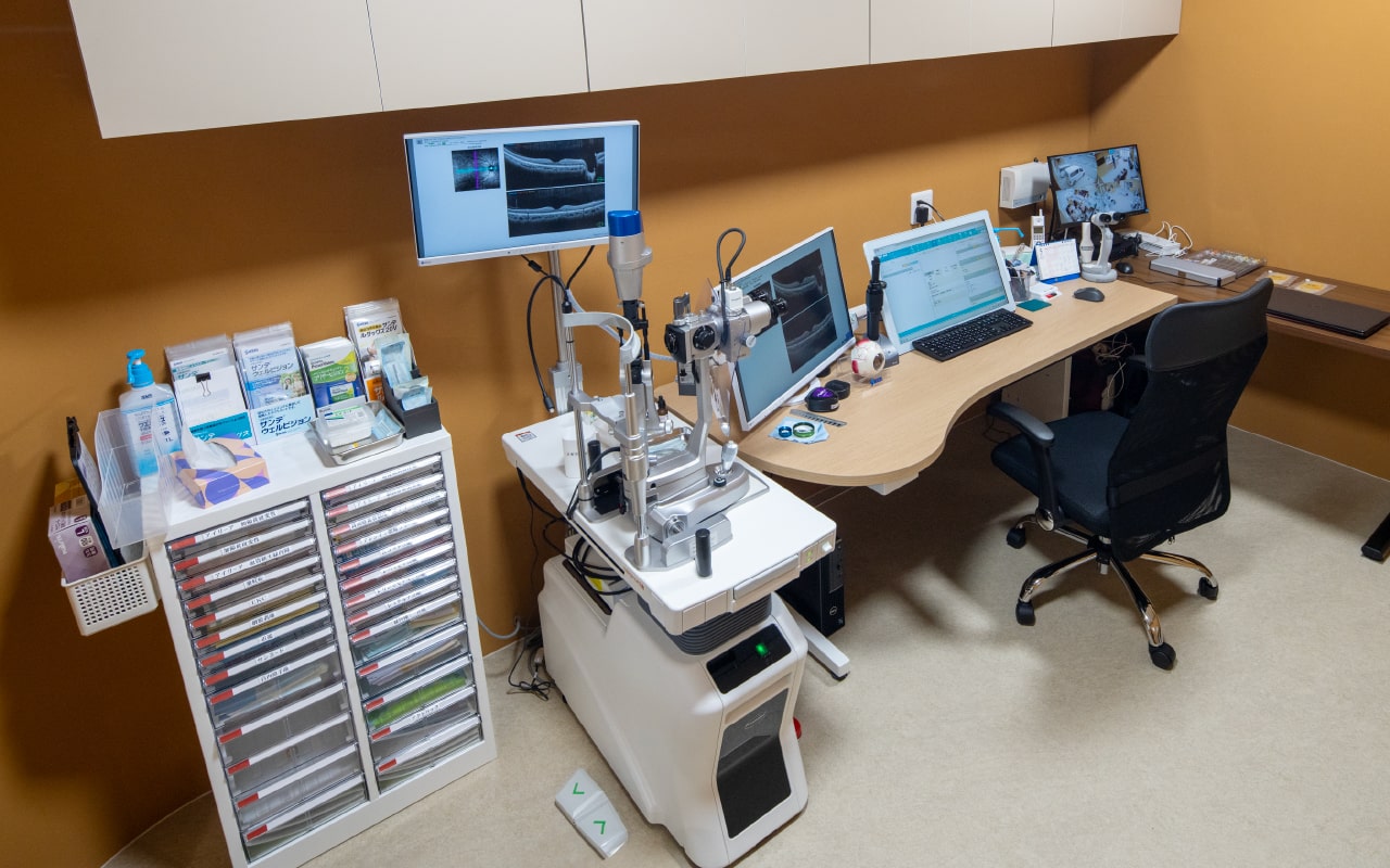 当院では、患者様に適切な医療を提供できるよう、検査機器・手術機器を導入しています。視力検査や視野検査、眼底カメラによる精密検査を行い、症状の原因を詳しく調べます。